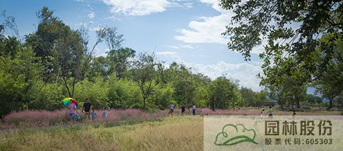 西側(cè)的連片稻田區(qū)域,建有開闊的觀景平臺,村民們可以在此開展小型活動或者跳廣場舞;又有一路延伸的田間綠道,兩側(cè)開滿粉黛亂子草,漫步其中,仿佛穿行在粉色花海。在此悠然慢行,呼吸著大自然的清新空氣,欣賞著如詩如畫的田園風(fēng)光,是何等愜意。部分綠道兩側(cè)種植柿子樹、銀杏等觀果、觀葉樹木,既可以為夏日的道路遮蔭,又能營造更加豐富多彩的觀景體驗。