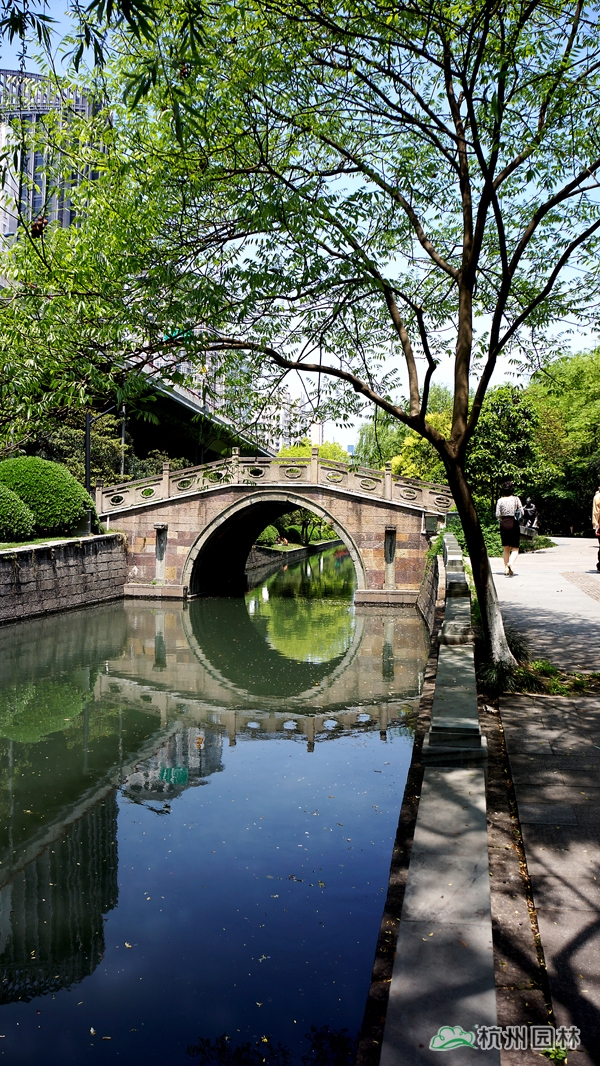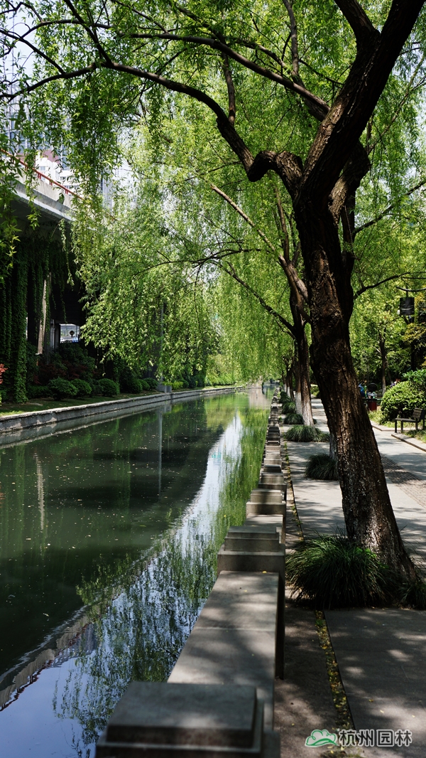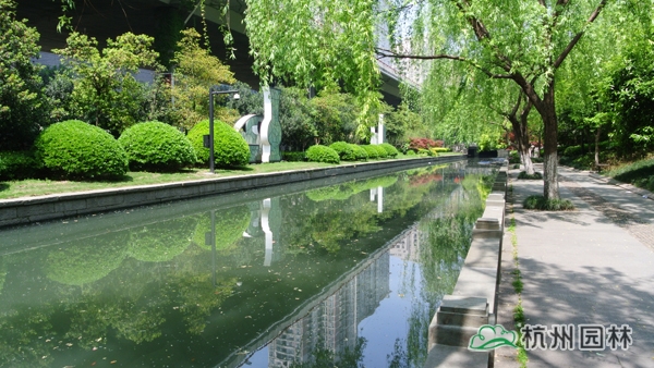 該工程位于杭城南部,施工范圍為倉河下路至鳳山橋,內容包括綠化種植、土方、園路平臺、廊架棧道、雕塑基礎、河道清淤等。工程在充分尊重歷史文脈的基礎上,再現了生態優美的自然環境,綠意盎然的植物、舒緩平坦的園路、飽經滄桑的古橋、栩栩如生的雕塑,與沿街的粉墻黛瓦、名人故居等遙相呼應,千年中河美景,盡顯無遺。
