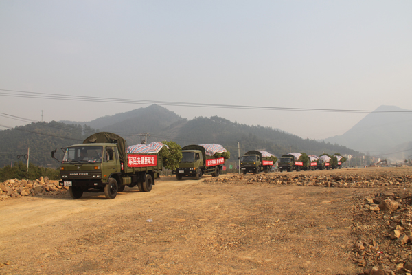 下午3點50分,八輛一字排開的軍車全部裝上了苗木,并進行了仔細的遮蓋和捆綁。隨后,在噼噼叭叭的鞭炮歡送聲中,車輛徐徐開出基地,向舟山方向駛去。