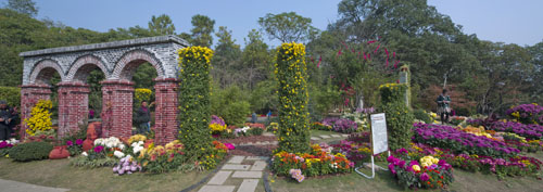 作品最大特色之處在于對(duì)原地形的充分利用及合理改造,依山勢,按水理,精細(xì)打造每一個(gè)駐步休憩之所,搭配這種菊花,或色彩,或形狀,以此營設(shè)自然而又不失韻味的菊花景觀。最后,讓人融入其中,步伐、氣息、身影混雜交錯(cuò),展示出城市生活中人們努力追求或回憶的一種起居文化,亦或是一種清凈、淡雅的“和”文化。