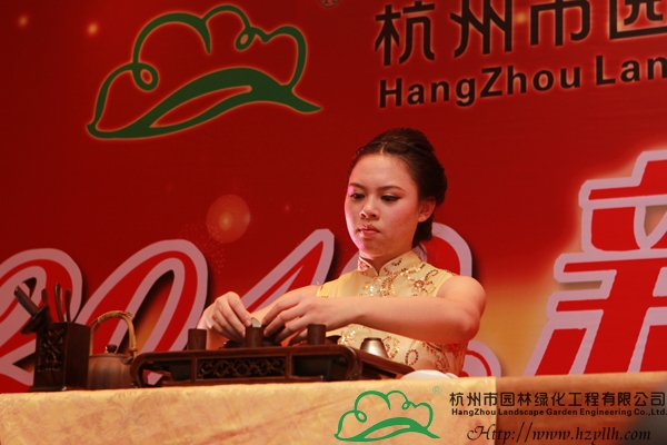 隨著晚宴的開始,精彩的節目表演也拉開了序幕。一曲熱情激昂的鼓樂《中國龍》,營造出了龍年吉祥喜慶的節日氛圍,隨后,唯美的獨舞表演、深情的情歌對唱、優美的葫蘆絲吹唱,功夫茶道、詩詞朗誦、搞笑小品……一個又一個精彩節目,將現場的氣氛一次次推向高潮。而期間最令人期待的,是現場的抽獎環節,一等獎的42寸高清液晶電視機、二等獎的皇冠寢室羽絨被、三等獎的博洋家紡四件套,豐厚的獎品讓每個人都期待著幸運的降臨,隨著一組組數字的公布,抽到獎的人一個個歡喜雀躍,興高采烈地領走了獎品,現場成為一片歡樂的海洋。最后,投標中心的一曲《明天會更好》,傳達了所有人對2012年的美好期待和祝愿,也預示著杭州市園林綠化工程有限公司2012年新春團拜會的圓滿成功!