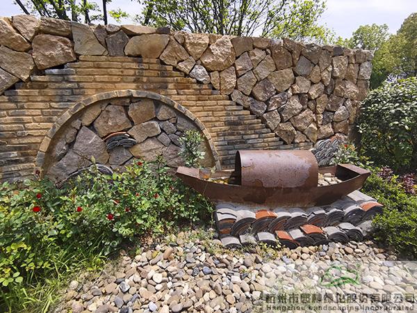 以舊青磚與多種元素搭配的景墻,