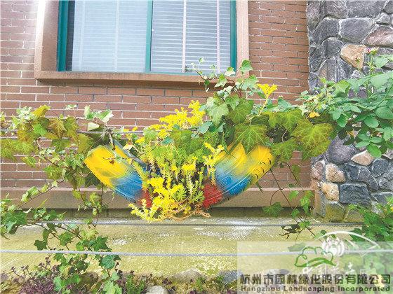 梅秋里的房屋多為兩到三層建筑,但建筑風格、外墻立面均有區(qū)別,因此,在進行景墻施工時,根據(jù)每家的房屋建筑特色選擇了不同的材料和植物配置手法。如,建筑外立面為紅色的,景墻以紅色磚為主,搭配月季、佛甲草等植物;建筑外立面為灰色的,景墻以淺黃色磚為主,結合小木樁或仿竹籬笆,搭配石竹、美女櫻等植物;建筑外立面有大理石點綴的,景墻以桐廬石為主,輔以裝飾過的輪胎,點綴佛甲草、常春藤等植物。不同的處理手法,使得家家戶戶的景墻既有連續(xù)性,又有各自的風格。