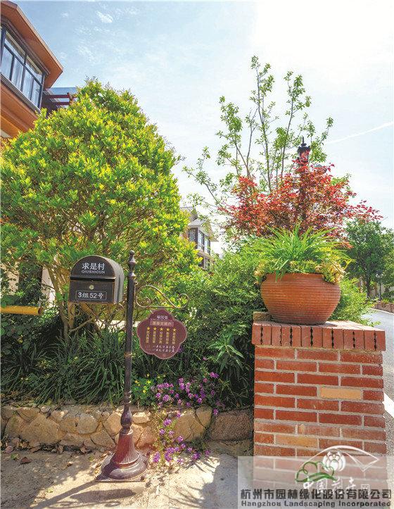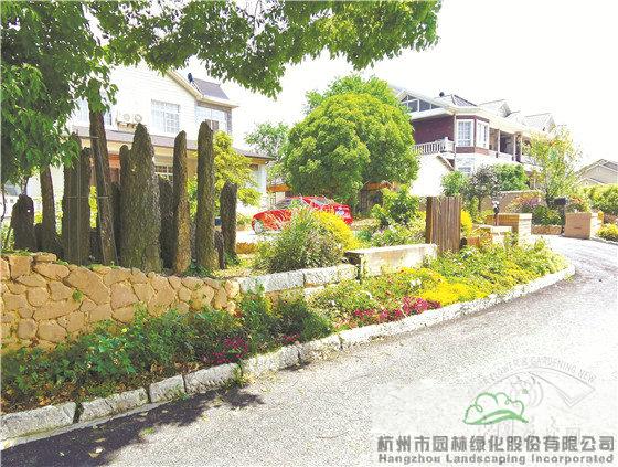 景墻邊的植物配置同樣有講究。利用銀杏、桂花、梅花、紅楓等植物營造上層空間,這些植物具有遮擋作用,能夠為庭院營造一定的私密空間。通過樹狀、球狀、攀援、傘狀、字母等各種形態(tài)的月季,金冠女貞球、龜甲冬青球、銀姬小蠟球、藍莓、八仙花、小葉梔子、翠蘆莉、花葉千鳥花、藍山鼠尾草、紫葉狼尾草等小喬灌木,在打造中層空間的同時,和美女櫻、金娃娃萱草、花葉玉蟬花、花葉香桃木、紫菀、澤蘭、礬根、五彩絡石、石竹等下層空間植物一起裝飾和襯托景墻,使家家戶戶的景觀更加豐富多變。