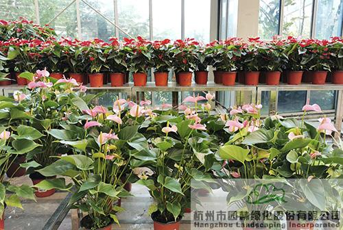 開花熱鬧的粉掌、紅掌