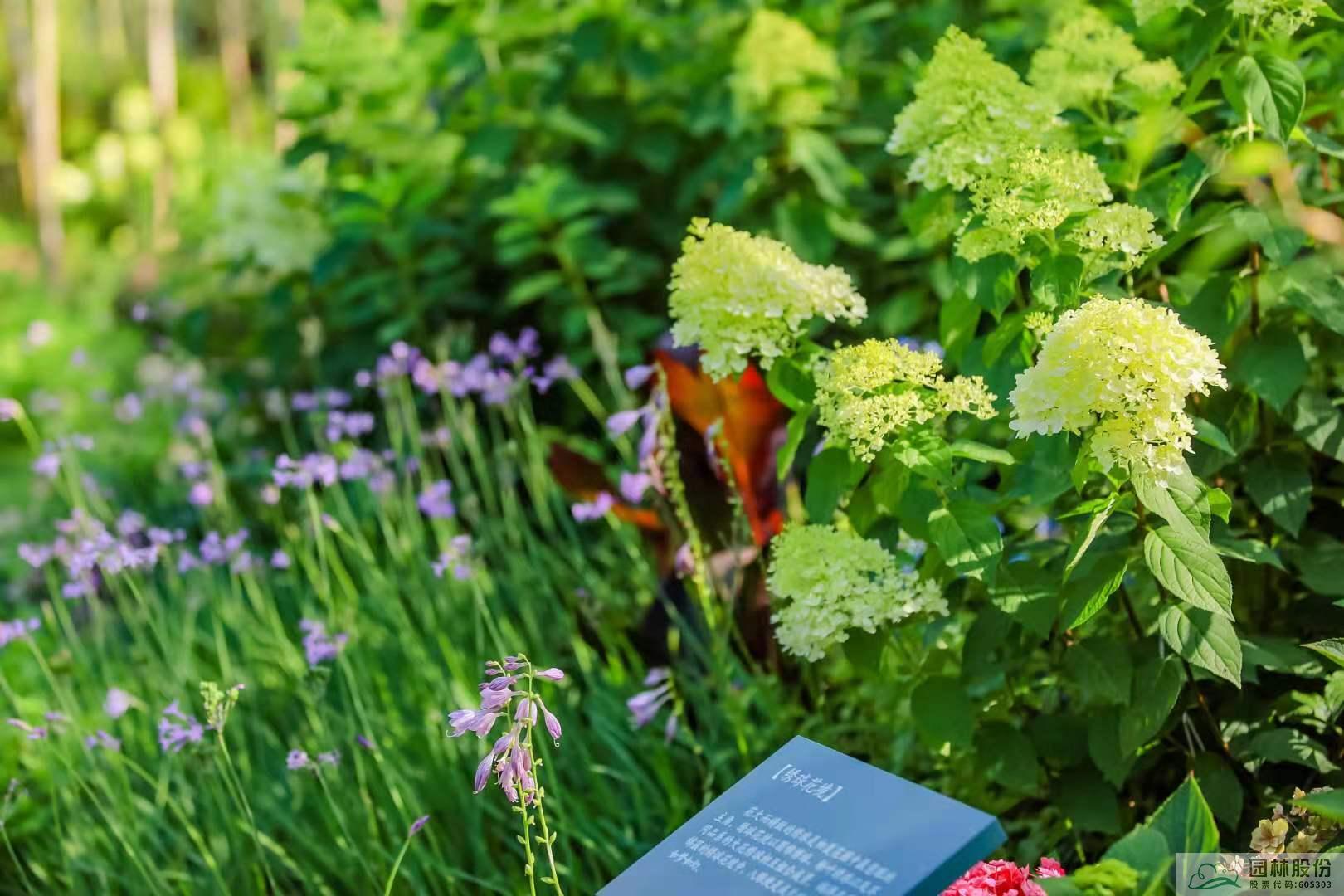 多個品種的繡球正次第開放,粉色、藍色、紫色、白色等,五彩斑斕,絢麗多姿。