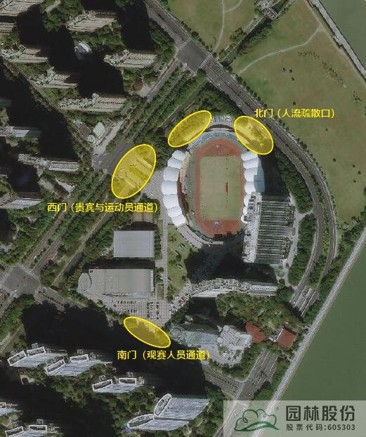 設計策略:對亞運場館三個出入口進行景觀提升,梳理中下層植被,布置足球主題裝置小品或綠雕,配合特色花境花帶和蒔花,打造活力、歡快、熱情的核心景觀氛圍。