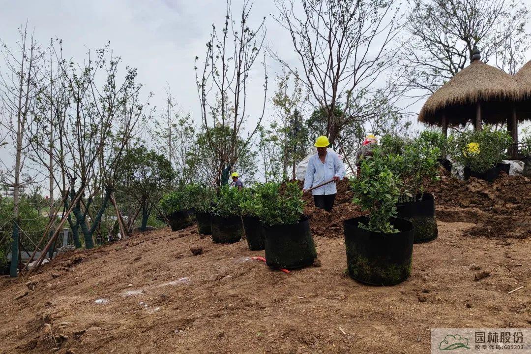 為提高苗木成活率,確保展園景觀效果,通過提前容器化處理、加大加固土球、噴施抑制蒸騰劑等多種途徑,為實現展園設計思想的精準表達與完美落地打下基礎。