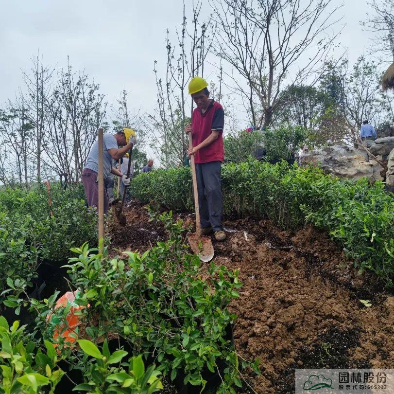 這其中運用到了茶樹地轉容的管理技術和大型苗木的土球加固技術,為保證茶山景觀效果完美呈現,技術人員采取了一系列措施,包括開挖前先修剪嫩芽、噴施蒸騰抑制劑以及根據季節變化采取相應遮陽、施肥、預防病蟲害等相應措施,經過幾個月的精細化養護,最終達到“問茶”片區的景觀效果。