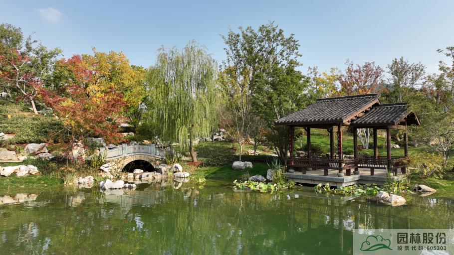 杭州園總體以西湖“景中村”為設計藍本,以“家在錢塘”為主題,通過浙派園林的造園手法,營造“竹隱”“云舍”“湖居”“問茶”“尋香”五大展區,描繪出一幅“小橋流水人家”與茶園竹林、南宋風情相交融的美麗畫卷,塑造“人與天調,然后天地之美生”的生態園林,展現宜居宜業宜游的詩畫西湖和杭州韻味。項目施工內容主要包括鋪裝工程、綠化工程、園林水系、仿古建筑等。