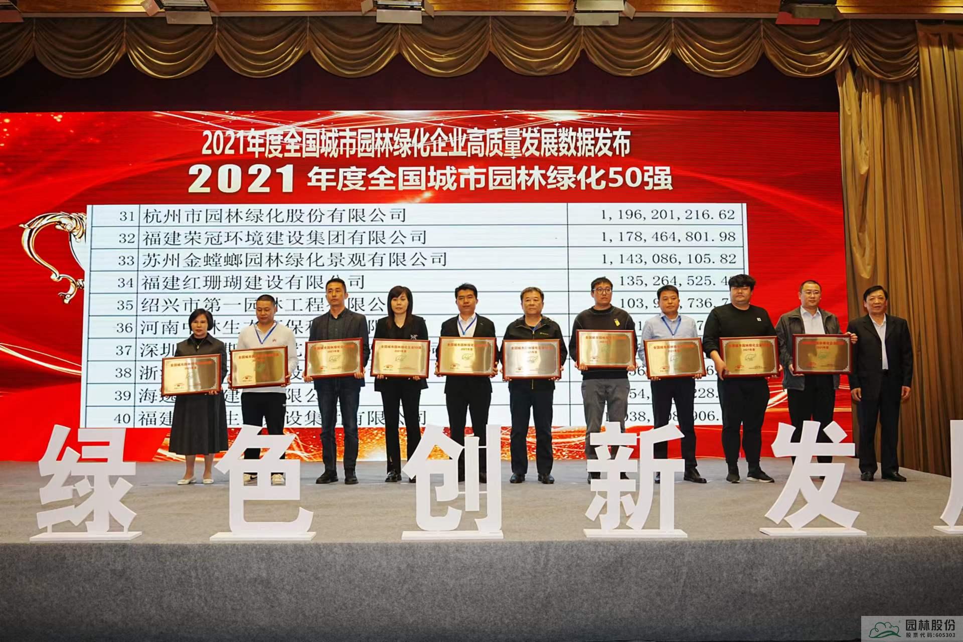 園林股份上榜2021年度全國城市園林綠化50強