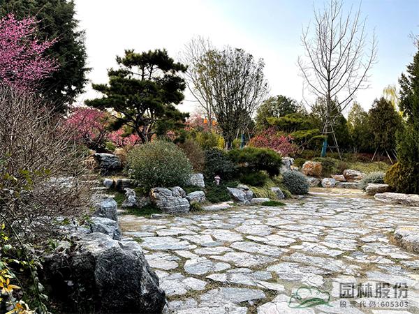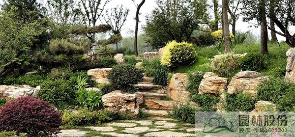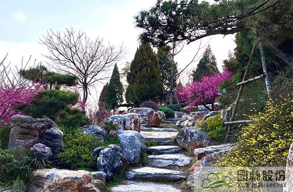 運用山石點綴園林空間,比如:路石、駁岸、擋土墻、石磯、踏步、護坡、花壇,既造景又具實用功能;石材的機理及質(zhì)感在環(huán)境中可起到點晴作用,使園林空間層次感及深度得以加強。