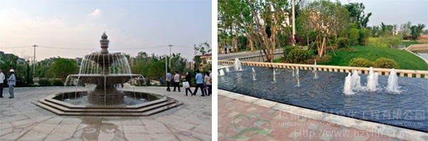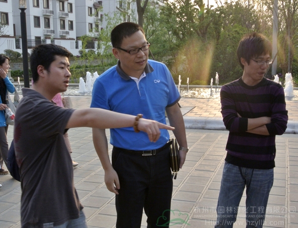 位于南京徐莊工業園內的紫金東郡居住區景觀綠化工程剛剛俊工,項目經理場升超帶領大家參觀了現場,并針對工程中的園路鋪裝、植物配置、水景設置等進行了講解。為了突出江南水鄉的特色,工程中的水景元素運用比較多,從大門口的水池、噴泉雕塑,到不同風格的小型水景,使小區的整體景觀變得更加生動,更為即將到來的炎炎夏日增添了幾許清涼。