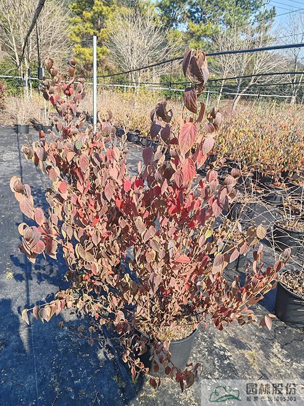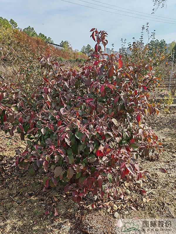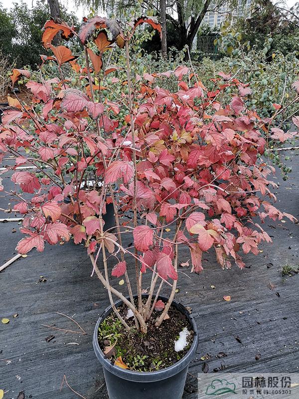 忍冬科莢蒾屬,叢生性落葉灌木,高可達4米。花白色,花期4-5月,果大而紅,觀果期長,可從7月持續到10月。葉掌狀,通常三裂,秋季一般9-10月葉色開始轉紅,11月達到最佳效果。歐洲莢蒾是莢蒾屬中秋色葉效果較好的一個種類,紅葉期來得比較早,且葉色最為鮮艷。該種病蟲害少,適應性強,耐寒,北方室外能正常生長。生長速度快,適合工程應用或庭院觀賞。