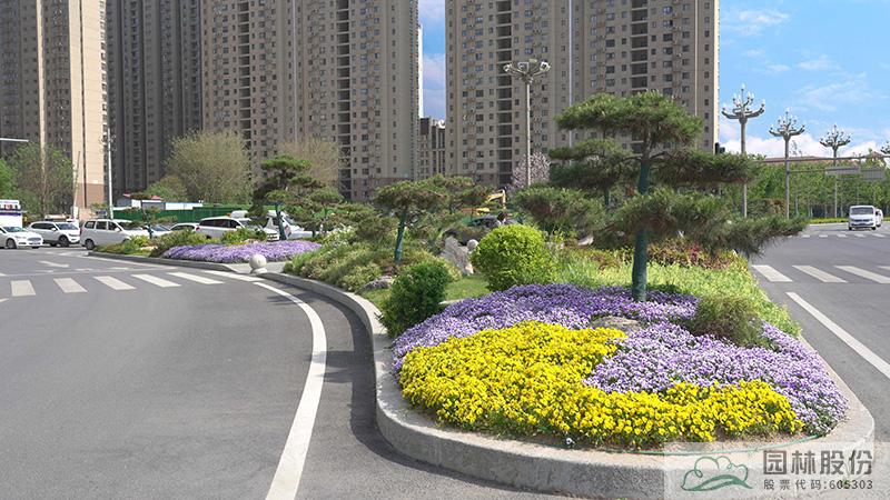打破陳舊的交通環島形式,以現代、簡約、特殊的跌落式花壇,配置造型黑松、杜鵑、草花、草坪和景石營造自然、疏朗的交通島景觀;側分帶營造以娜塔莉、石楠柱相結合的特色景觀大道;道路端頭植被層次豐富,常綠喬木、開花小喬木、造型松搭配,加入木本花卉、草花、景石等元素。兩側綠化帶植物造景,充分利用錯落有致的地形,采用復層種植、品種多樣、色彩搭配、疏密變化的豐富植物組團配置,形成四季常青,三季有花,步移景移。設施景觀除了必要的燈具、標示牌、垃圾箱之外,還設置了極具觀賞性,充滿時代氣息的雕塑、景墻等景觀設施。旱溪部分更勝一籌,疊水、霧森、棧道、卵石、置石駁岸相結合,自然流線結合游憩設施布置。