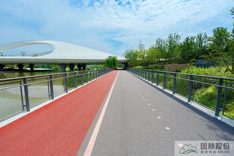 城市綠道通過鋪裝材質(zhì)區(qū)分出騎行道和跑步道。騎行區(qū)域采取瀝青材質(zhì),提高耐久度和使用壽命,有效控制成本造價(jià)。跑步道區(qū)域采用EPDM塑膠顆粒面層,提高使用舒適度,采取靚麗的色彩與騎行區(qū)域進(jìn)行區(qū)分。結(jié)合人才驛站設(shè)置瞭望臺(tái),游人在此可小憩補(bǔ)充體力,也可登高俯瞰河道景觀。造型獨(dú)特的驛站和瞭望臺(tái)也是河道上的一處風(fēng)景。