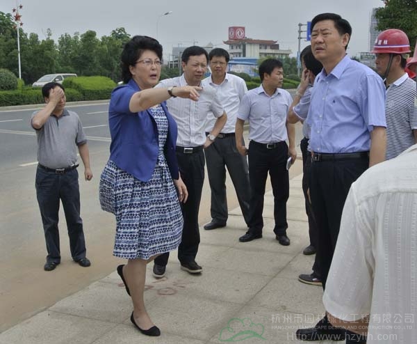 6月20日上午,江西省吉安市市委書記王萍一行來到杭州市園林綠化工程有限公司承建的后河二期改造“金腰帶”工程施工現場視察工作,項目總指揮徐建良、項目經理沈玉平等陪同前往。